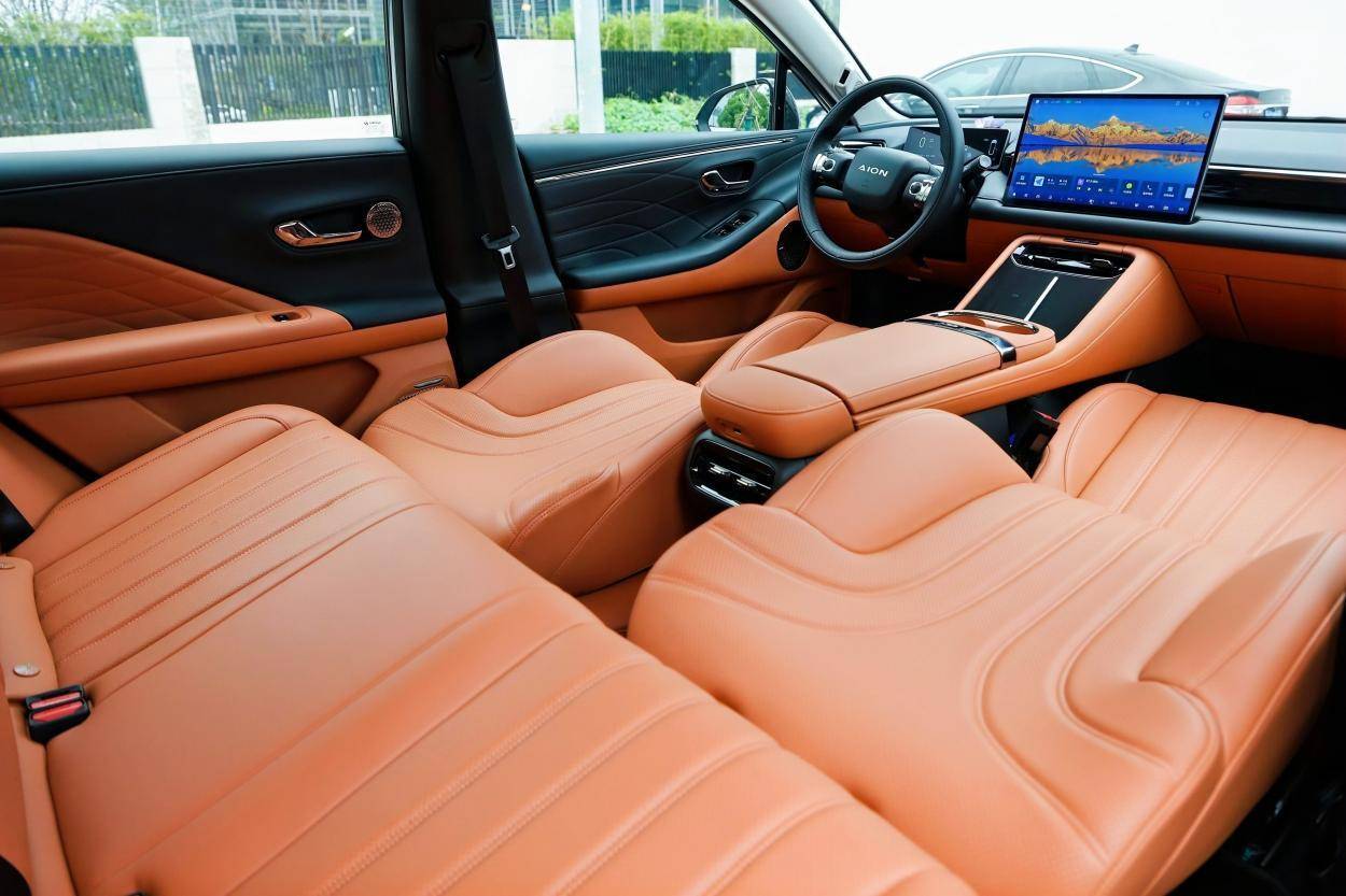 有趣的是,埃安RT的前排還能和后排座椅聯動,形成「貴妃椅模式」,從這樣的空間創新性上來看,埃安已經將同級大部分選手甩在了身后。