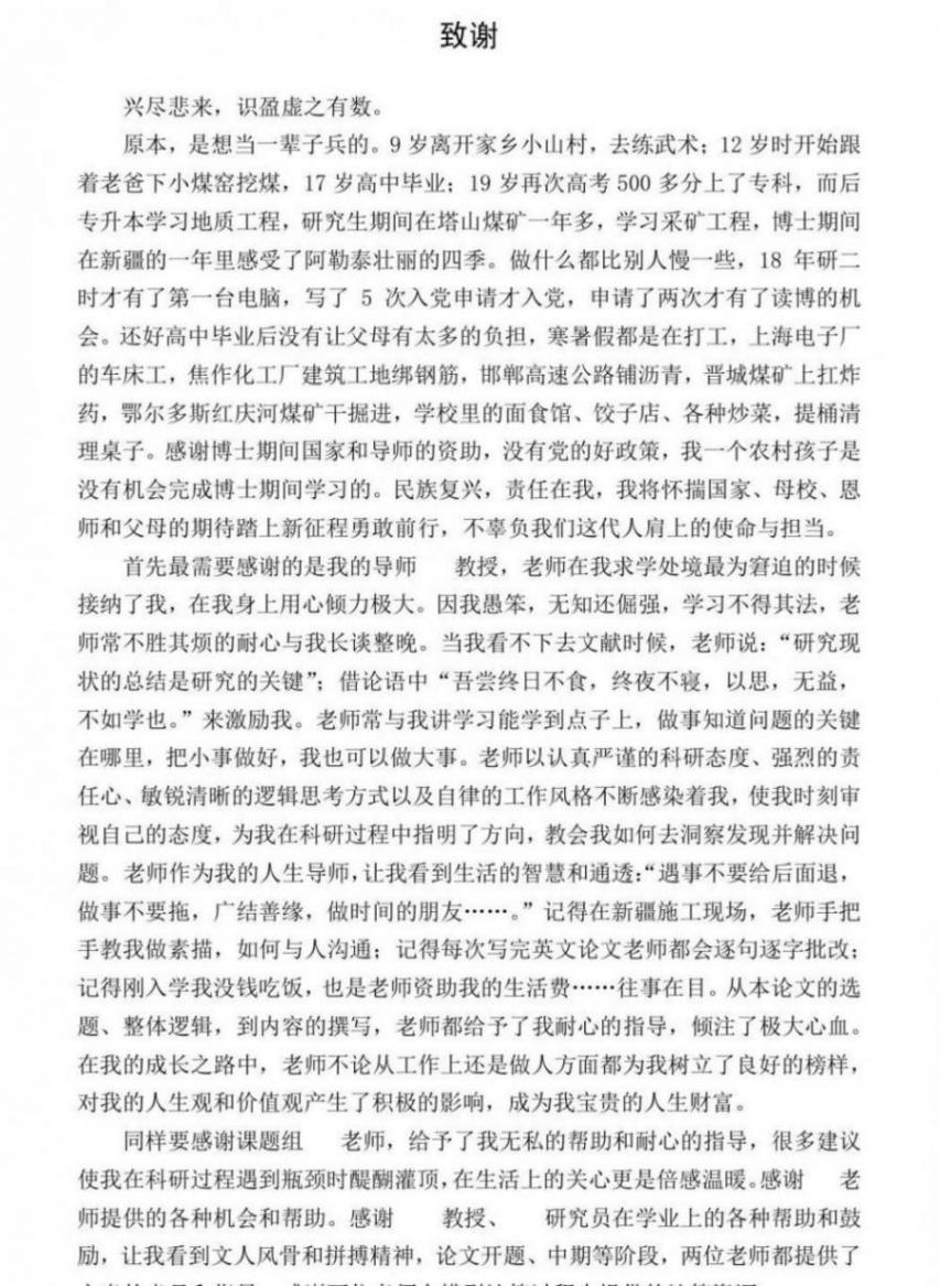 博士畢業前他寫了份詳細的致謝,列了二十多個人。有導師,有給過飯吃的工友,還有一直支持他的女友。他說大家幫他渡過難關,尤其感謝那些默默付出沒要回報的人。