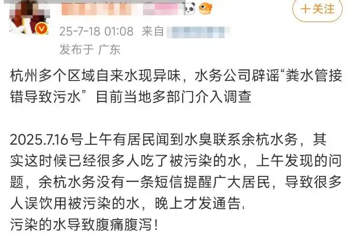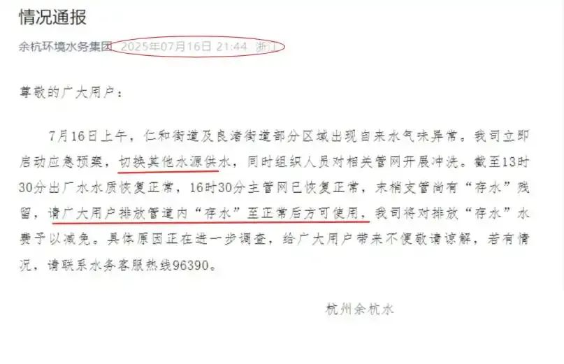 2023年7月16日早上9點(diǎn)多,杭州余杭區(qū)仁和街道的居民們開始陸續(xù)投訴,自來水出現(xiàn)了嚴(yán)重的臭味,甚至難以忍受。