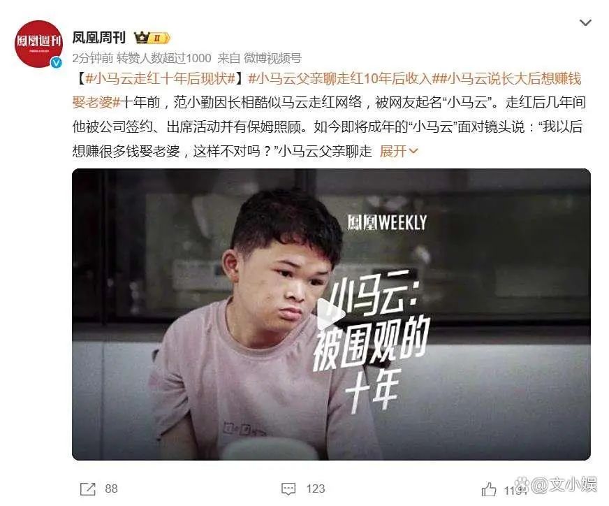 十年過去,“小馬云”早已不再是那個被偶然捧紅的孩子,而成了一個被圍觀、被消費的符號。他的故事,或許正是這個流量時代最真實的縮影——當(dāng)熱度褪去,剩下的,往往只有一地雞毛。