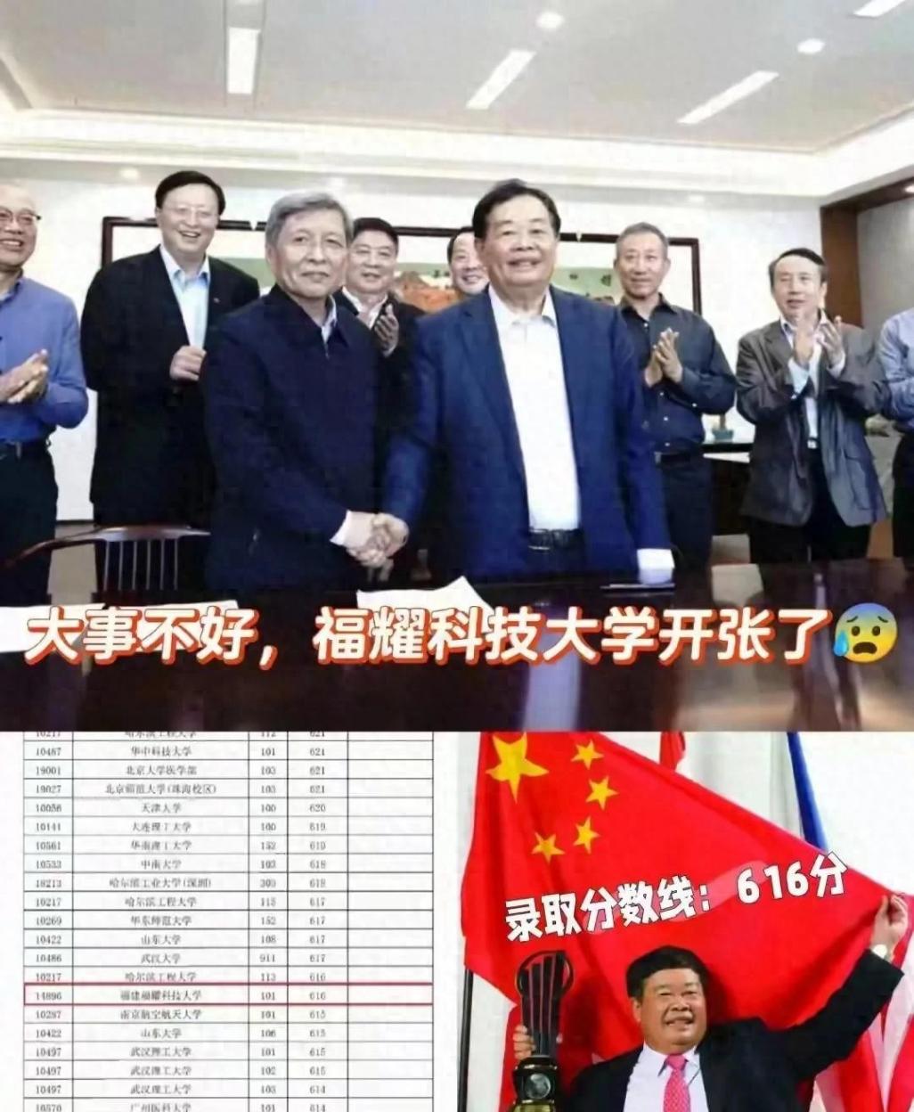 前些日子高考招生結果一出,全網都在討論這事。福耀科技大學是今年剛成立的民辦大學,在廣西那邊物理類投檔分616分,比華南理工還高。這學校今年第一次招生就火了,連廈門大學都比不過,福建考生最低分直接超過廈大7分。