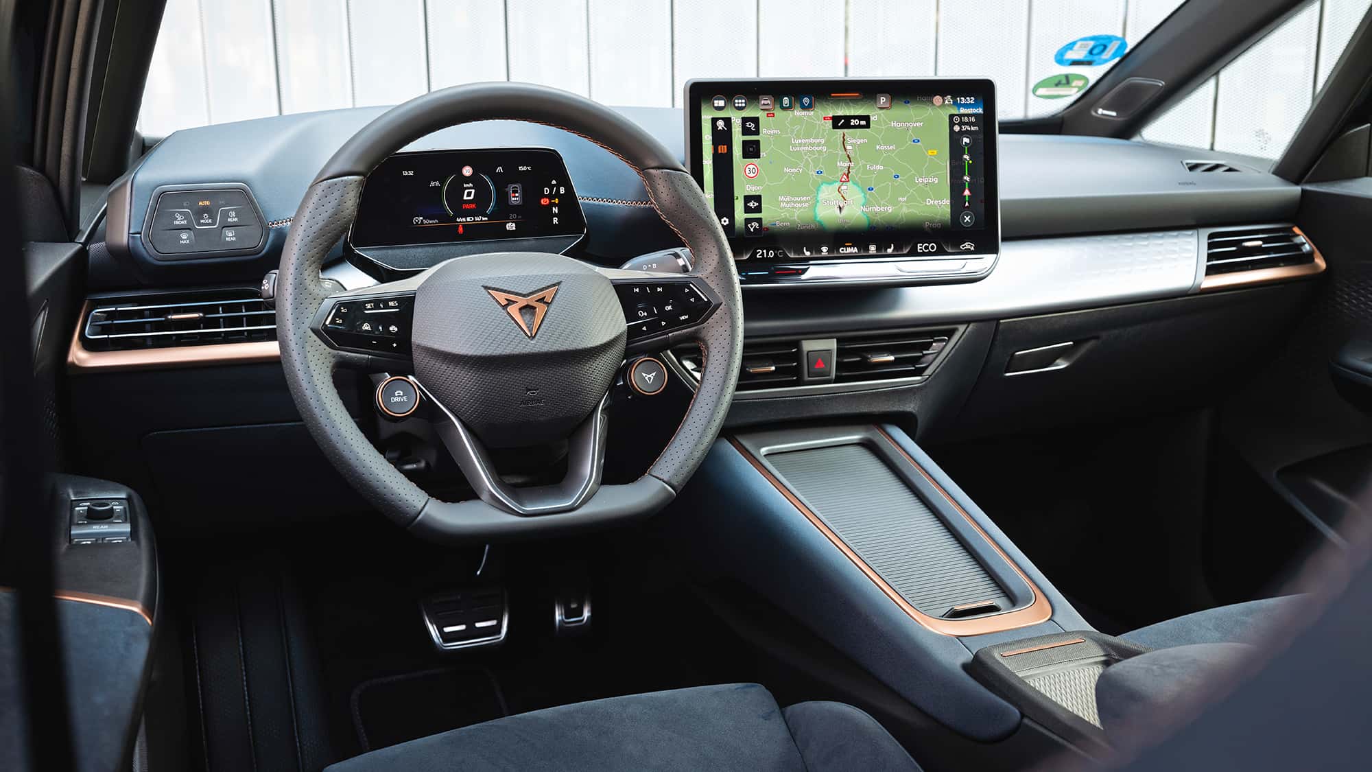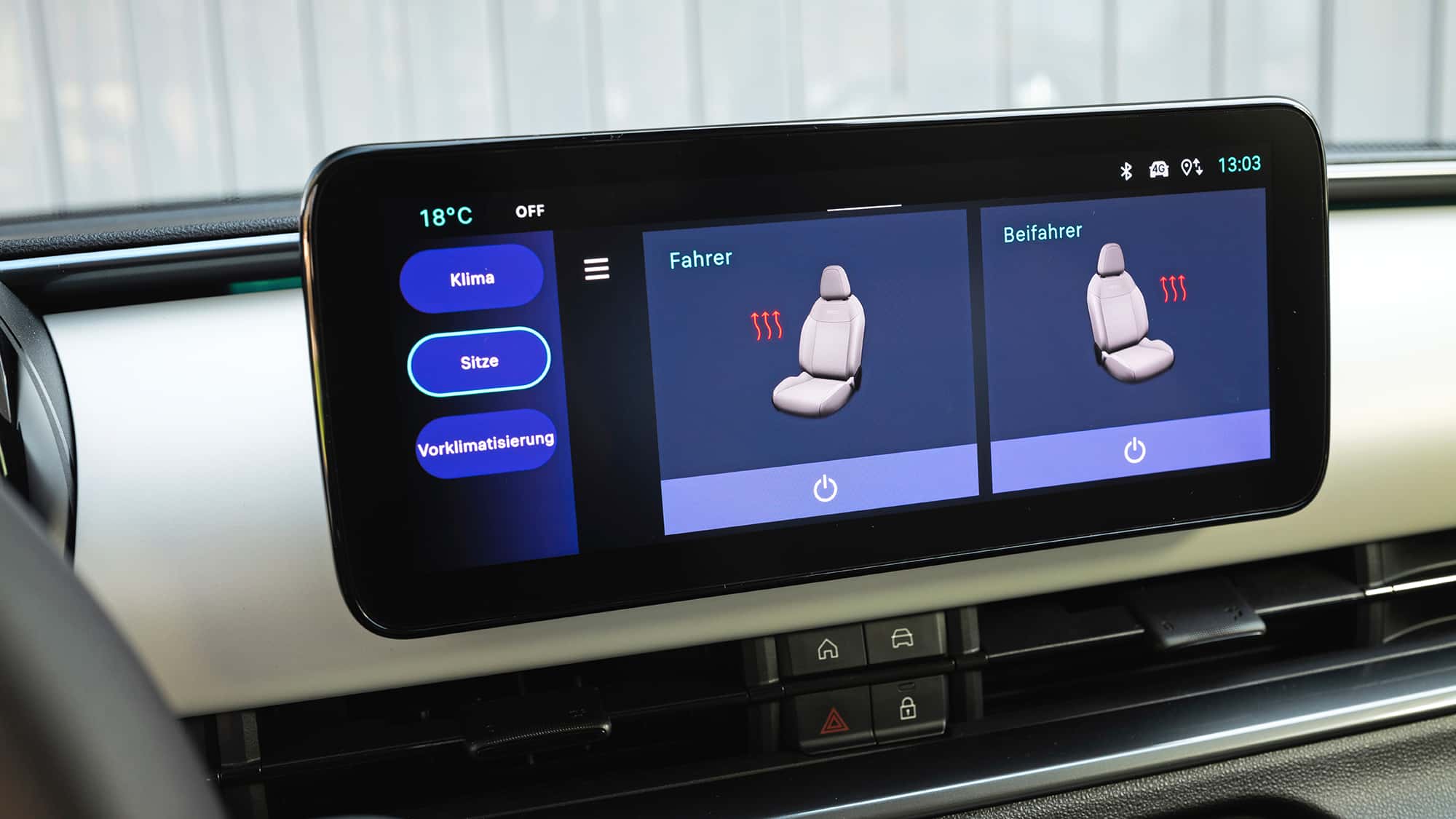 不過,小尺寸中控屏在功能與色彩方面遠不如起亞與Cupra,在線娛樂與語音控制也明顯不足。別忘了,這輛車起售價接近43000歐元,卻沒有EV3那樣的豐富配置。例如,若要為起亞選裝19英寸輪圈,需同時選配多個選裝套餐才行。