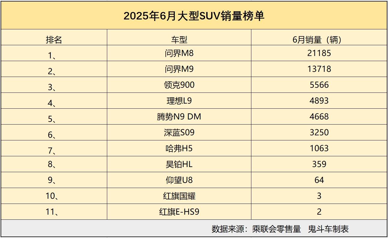 從這份榜單上看到,現(xiàn)在,國(guó)產(chǎn)大型SUV幾乎處于霸榜的狀態(tài),它們都是新能源SUV,打破傳統(tǒng)大型SUV的痛點(diǎn),而且,價(jià)格全面打下來(lái),不會(huì)動(dòng)不動(dòng)就上百萬(wàn)的價(jià)位,很多消費(fèi)者都能買得起。