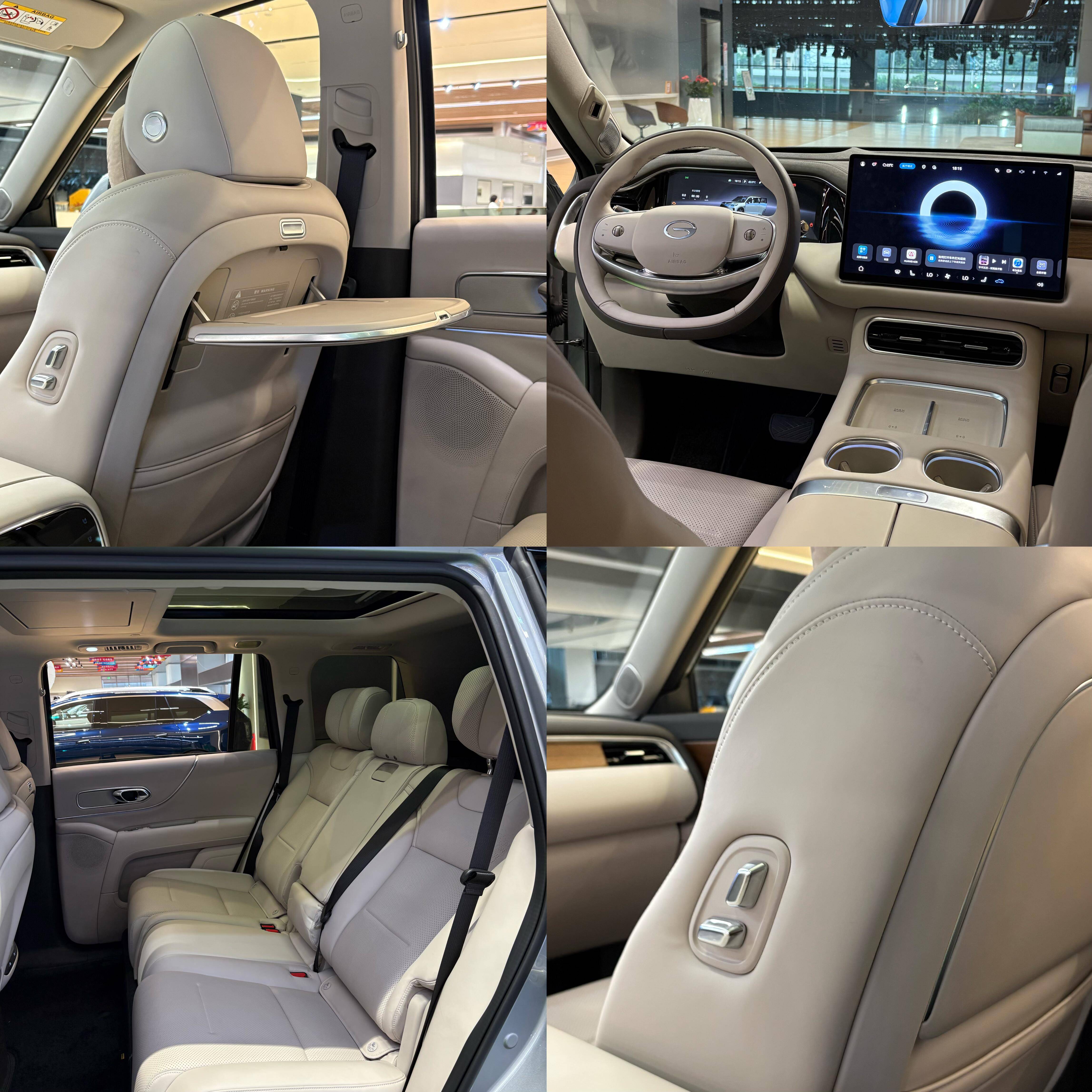 車內提供大五座以及2+2+2式的6座布局可選。一二排座椅均支持電調、加熱、通風、按摩等功能,其中,5座車型后排配備帶杯架的中央扶手,6座車型二排為雙獨立座椅,再配合17.3英寸吸頂娛樂屏、折疊小桌板、雙天窗、21揚ADiGO SOUND Pro音響系統(tǒng)等,乘坐舒適性不言而喻。